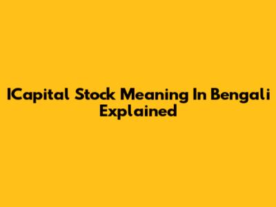 ICapital Stock Meaning In Bengali Explained