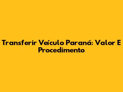 Transferir Veículo Paraná: Valor E Procedimento
